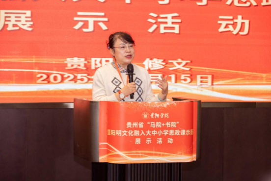 樊铁钢在致辞时表示,贵阳学院依托“马院+书院”协同机制,积极推动阳明文化的创造性转化与创新性发展。坚持以马克思主义为指导,构建了以阳明文化为核心的“六元文化”特色育人体系,打造“阳明文化+思政”典型案例与微课资源,并持续开展“阳明讲坛”“知行读书会”等品牌活动,将阳明文化馆、校史馆作为阳明文化育人载体,形成“理论铸魂、文化润心、实践育人”的立体化育人模式。贵阳学院将以此次活动为契机,持续深化“马院+书院”协同育人,强化师资共建与资源整合,推动阳明文化深度融入思政教育全过程,为全省大中小学思政课一体化建设贡献“贵阳学院样本”。
