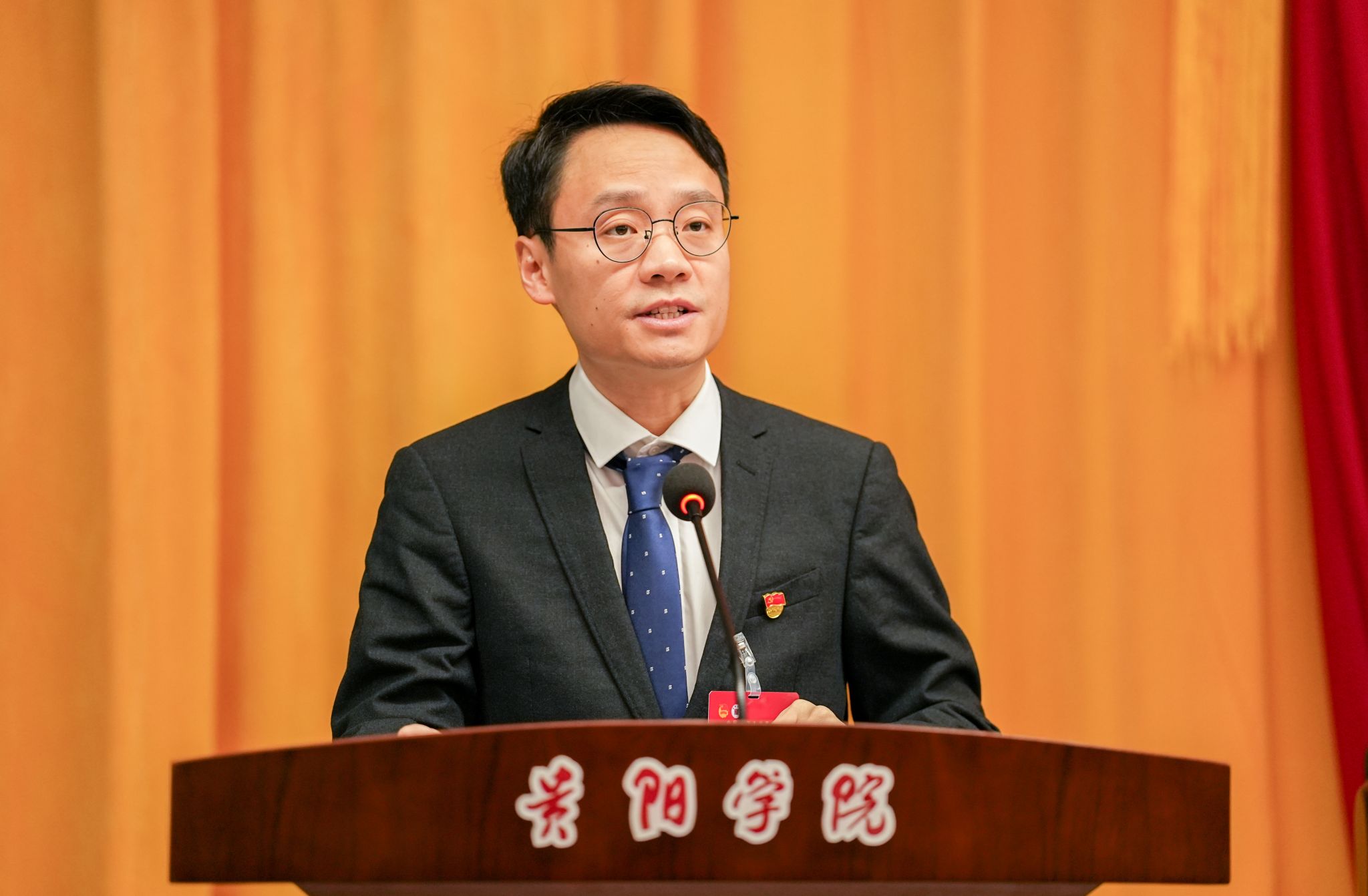 校工会主席薛莉代表群众团体致贺词。冉茂虎代表共青团贵阳学院第二届委员会作工作报告。