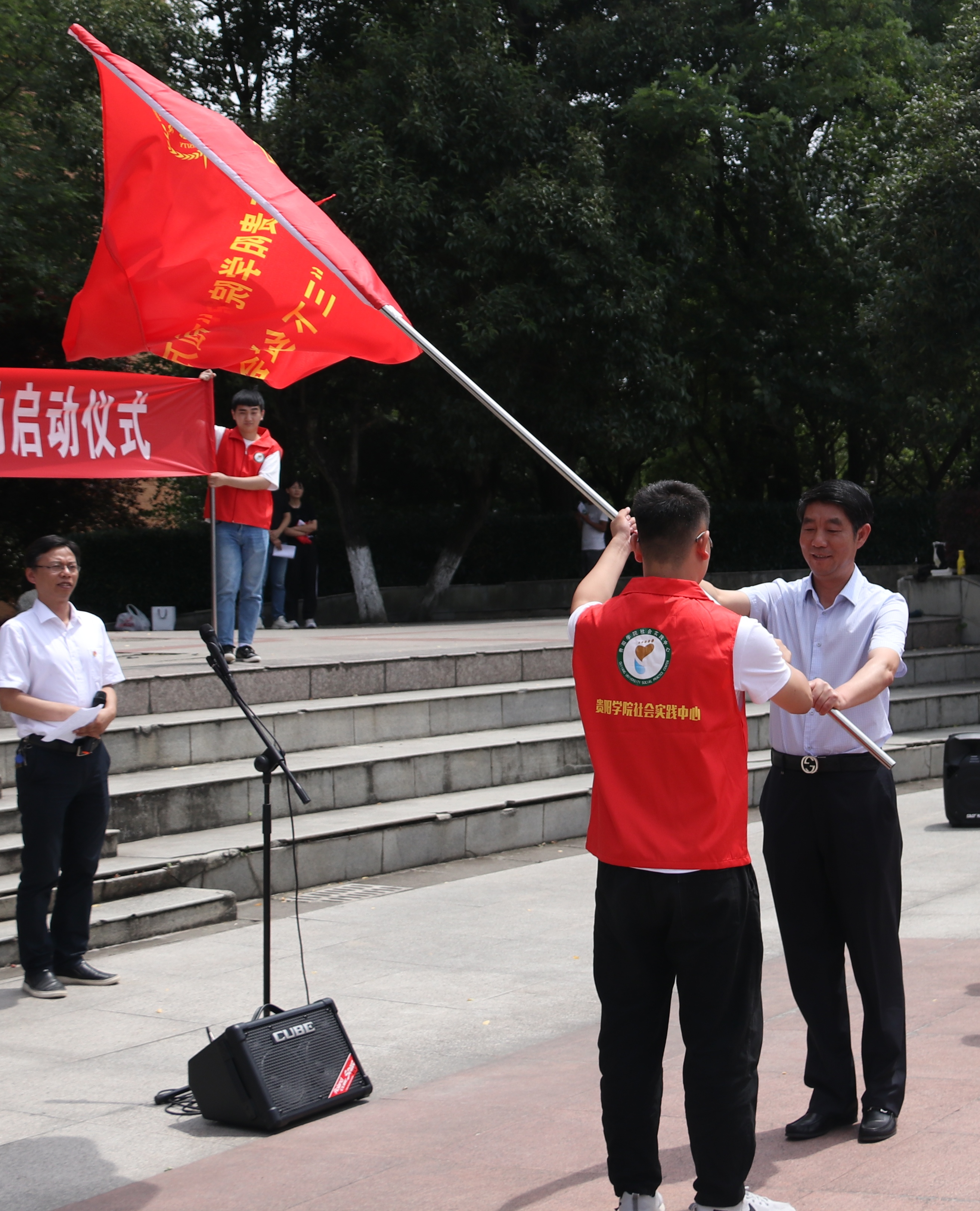 仪式上,由吕保平向实践队学生代表授予“2021年贵阳学院‘百团万人下基层’暨暑期‘三下乡’社会实践队”旗帜,标志着我校2021年“百团万人下基层”暨暑期“三下乡”社会实践活动正式启动,数百名学子即将前往贵州省各农村基层开展社会实践活动。