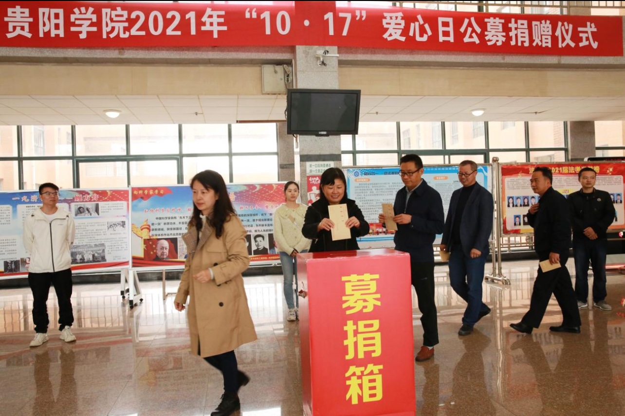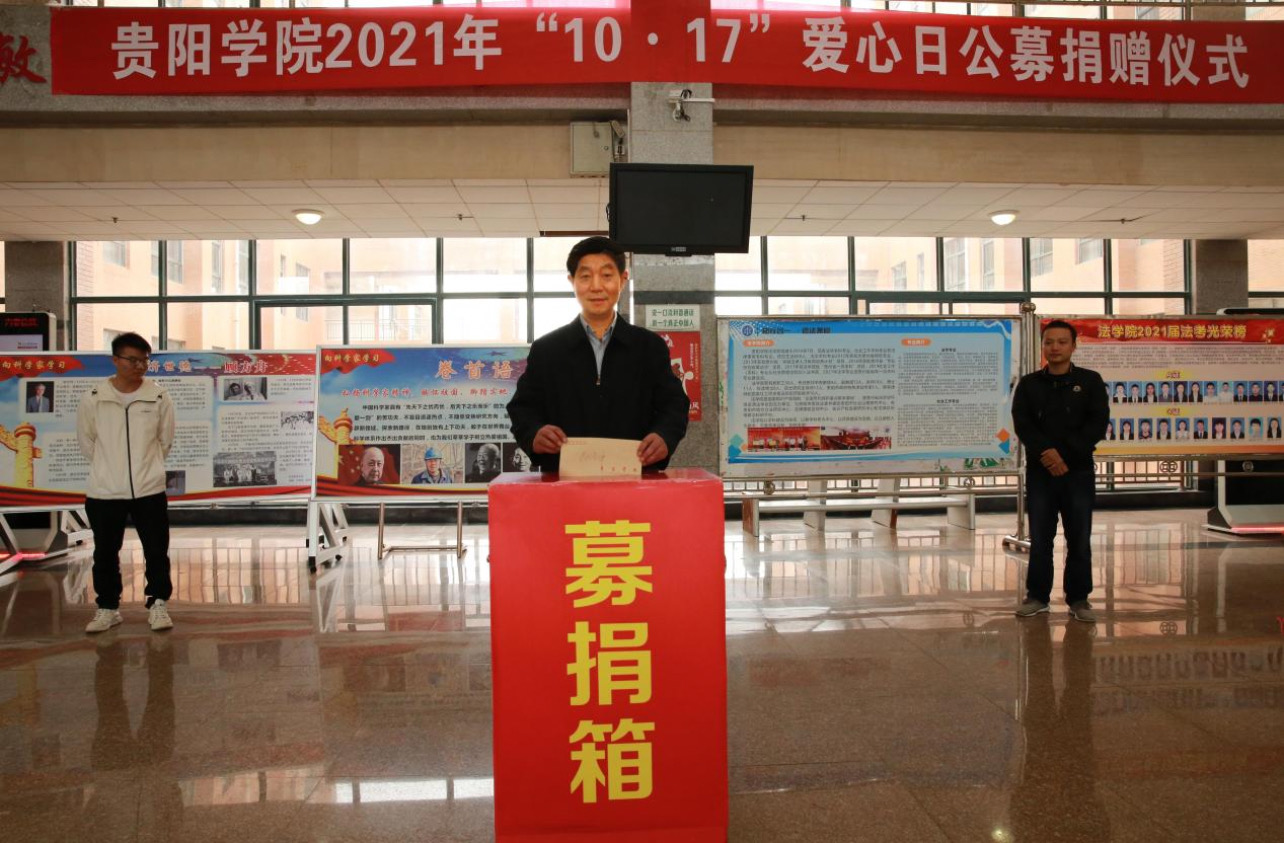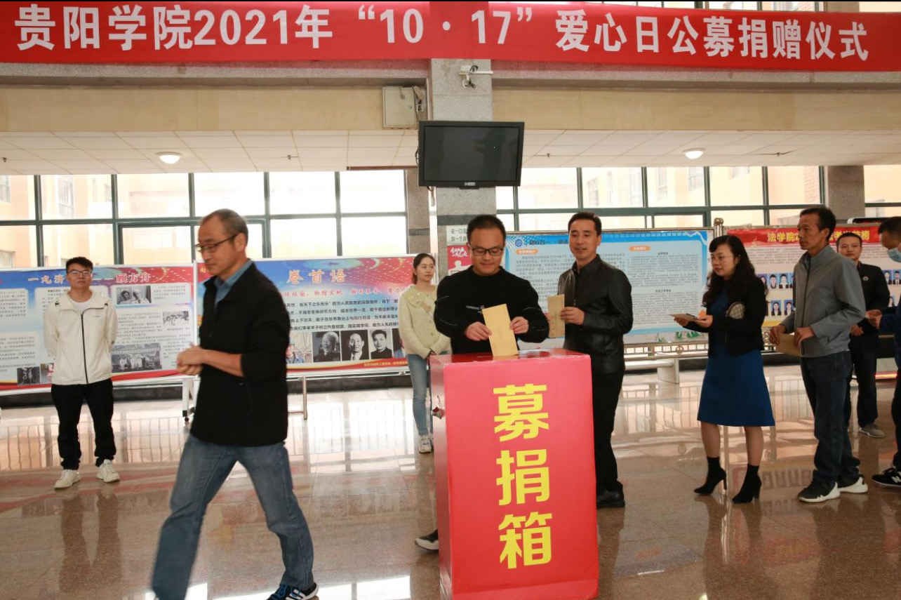 按照省教育厅的部署,我校于2021年10月15日中午在博雅楼二楼大厅举行了2021年“10.17”爱心日公募捐赠活动。校党委书记吕保平、党委副书记焦艳、赵福菓,副校长汪建初,纪委书记马力,副校长刘刚、李灿等校领导及教职工代表参加了此次捐赠活动。