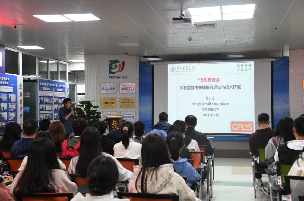 2021年10月15日,生命、生态科学系列讲座第10期在贵阳学院大学科技园举行。应贵州省农产品产地初加工关键技术研发与应用科技创新基地、贵州省山地生物资源保护与高效利用工程研究中心、贵州省生态环境优势农产品残留农药降解关键技术研究重点实验室邀请,华中农业大学曾云流博士在贵阳博雅众创空间做了题为“香甜自有道——即食猕猴桃关键催熟理论与技术研究”的学术讲座。讲座由王瑞教授主持,来自食品与制药工程学院、生物与环境工程学院及贵阳学院生态文明协会近50名师生参加。