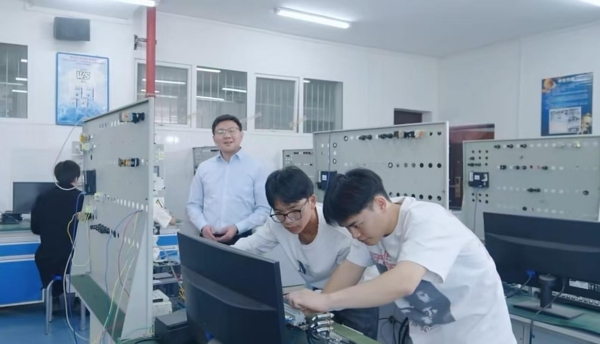 在给学生传授知识时,他主张理论联系实际,在实践中去探究事物的本源,去追寻事物的本质。他说对于理工科的学习是抽象的,因此在教学时,他将真实的物理世界与教材内容相结合,将真实的物理世界作为一个切入点,去分析和剖析事物的内在逻辑。为了能够让学生更好地理解专业知识,他还自主研发了数字化教学软件,例如《面向智能制造的C语言学习平台》《面向智能制造的电工技术实践平台》等,通过软件将场景话智能教学融入到课堂当中,打造智能化的学习平台。