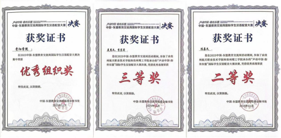 近日,由中国—东盟教育交流周组委会主办,贵州航天职业技术学院和贵州理工学院承办的“声动中国·韵传东盟”国际学生汉语配音大赛在遵义举办,我校留学生在比赛中脱颖而出,成功晋级决赛并取得优异成绩。