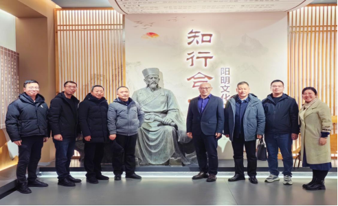 2025年1月2日,修文县政协、县委党校、贵州龙场王阳明研究院、贵州中医药大学时珍学院到阳明学与黔学研究院开展“阳明文化转化运用”交流座谈。修文县政协副主席、贵州龙场王阳明研究院院长李小龙,贵州中医药大学时珍学院党委书记、贵州龙场王阳明研究院副院长陈龙斌教授,中共修文县委党校教育科科长、高级讲师衣春迪,中共修文县委党校高级讲师韦忠将,修文县阳明文化研发中心副理事长、文博馆员胡小康,中共修文县委党校助理讲师申单立,贵阳学院音乐学院院长曾果果教授,副院长黄汨教授,阳明学与黔学研究院党支部书记、副院长刘继平教授参加座谈。座谈会由阳明学与黔学研究院副院长任健教授主持。