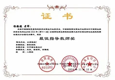 (全国高校文旅与会展创新创业实践竞赛获奖证书)