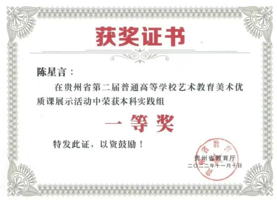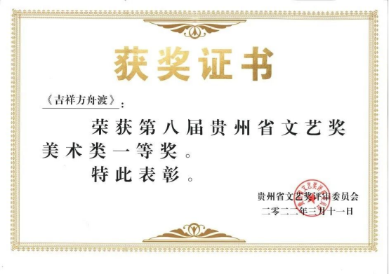 (贵州省文艺奖一等奖证书)