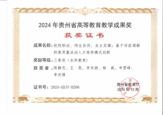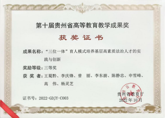 法学院教师获第十届贵州省教育教学成果奖