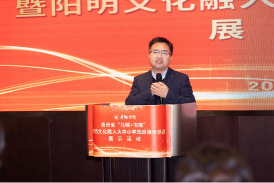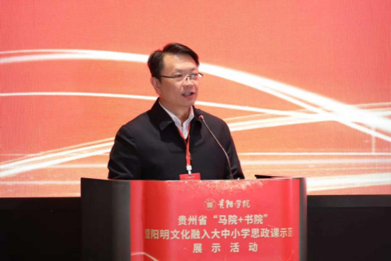 11月15日,由省委教育工委、省教育厅指导,贵阳学院、贵阳市教育局主办的全省“马院+书院”暨阳明文化融入大中小学思政课一体化建设示范课展示活动在中国阳明文化园龙冈书院举行。省委教育工委副书记李军出席并讲话,学校党委副书记、校长樊铁钢致辞,党委副书记李灿主持开幕式。