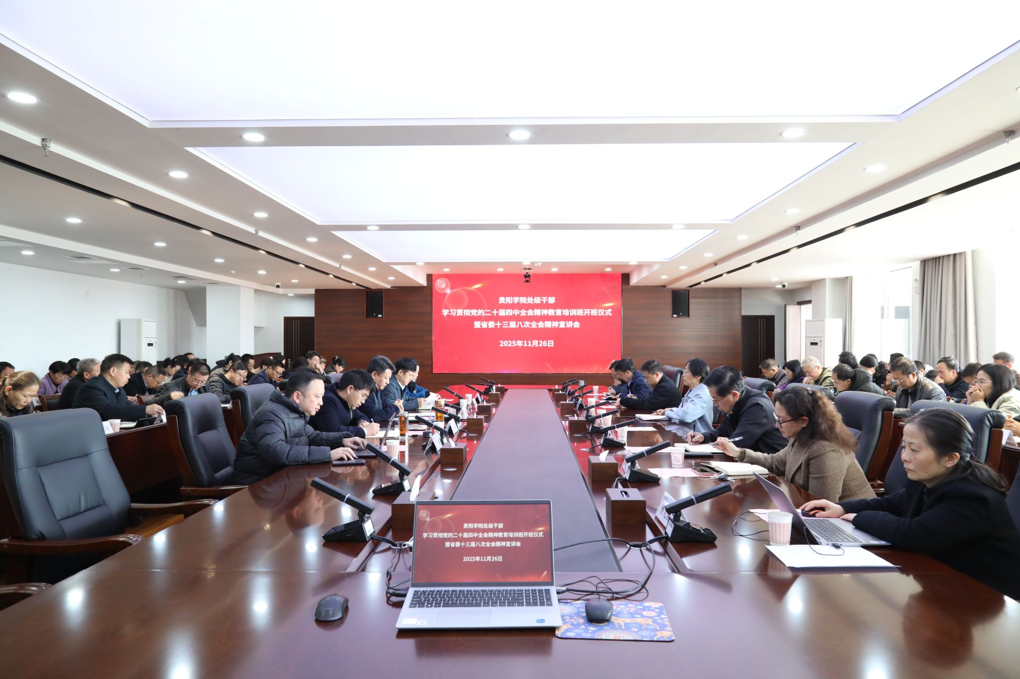 黄营在宣讲报告中系统梳理并深入解读了党的二十届四中全会和省委十三届八次全会的核心要义与实践。他强调,要以全会精神为指引,对标对表中央及省委决策部署,积极主动将学校发展置于全省“十五五”规划、全省高等教育事业和贵阳贵安经济社会发展大局中谋划和推进,科学编制学校“十五五”发展规划。要坚持目标导向、问题导向、结果导向,将高质量发展要求贯穿于学校教育教学、科学研究、人才培养全过程,强化比较优势,让长板更长,为申博升大做准备。要主动对接区域经济社会发展需求,持续优化学科专业结构,推动教育链、人才链与产业链、创新链有机衔接,增强人才供给的适应性和贡献度。要着力建设高素质专业化教师队伍,为学校发展提供坚实人才支撑。要坚持和加强党对学校工作的全面领导,围绕“十五五”发展需要,加强干部队伍建设,持之以恒正风肃纪,营造风清气正、干事创业的良好政治生态,为高质量发展提供坚强政治保证。