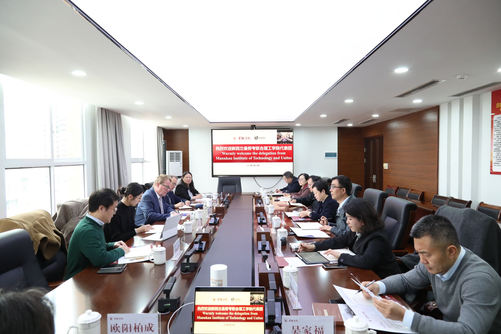 3月18日上午,新西兰曼努考联合理工学院副校长Simon Nash一行莅临学校开展交流合作洽谈。副校长罗红芳主持交流会并致辞,教务处、国际合作与交流处、相关专业学院负责人参加。