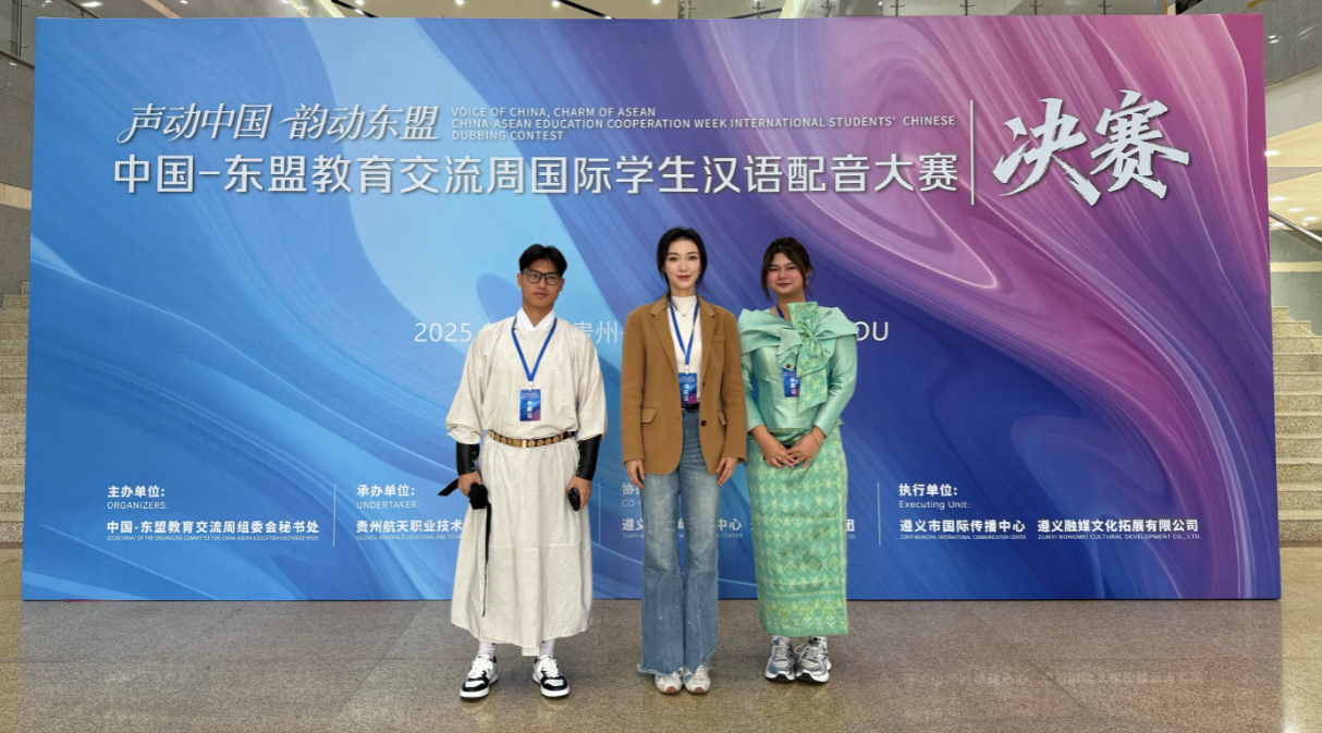 近日,由中国—东盟教育交流周组委会主办,贵州航天职业技术学院和贵州理工学院承办的“声动中国·韵传东盟”国际学生汉语配音大赛在遵义举办,我校留学生在比赛中脱颖而出,成功晋级决赛并取得优异成绩。