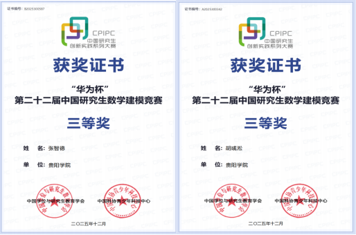 近日,2025年“华为杯”全国研究生数学建模竞赛获奖名单公布,学校计算机科学学院副教授赵林畅指导的两支参赛队伍,从全国24,371支参赛队伍中脱颖而出,双双荣获国家三等奖,为学校争得荣誉。