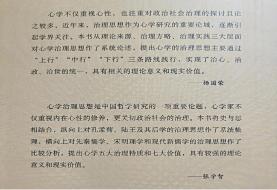 本书的出版,体现了学校在阳明学与中国传统思想研究领域的学术积累,展现了相关学科建设的进展,对于深化心学思想资源的当代阐释与实践转化具有重要意义。