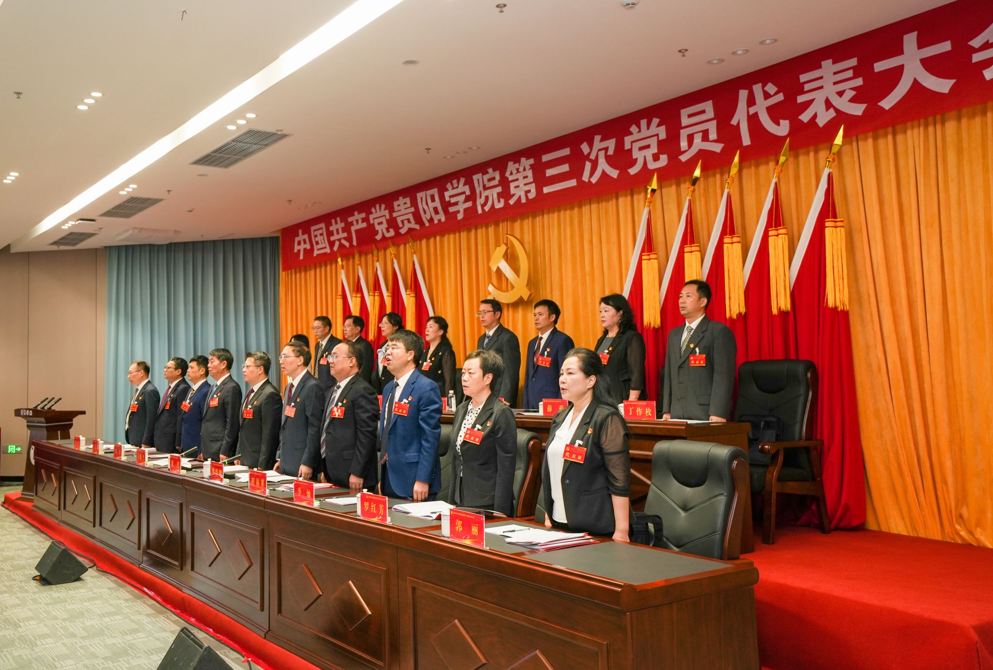大会现场气氛庄严而热烈。主席台高悬“中国共产党贵阳学院第三次党员代表大会”的醒目会标,帷幕中央的中国共产党党徽在红旗映衬下闪耀着璀璨光芒。会场内外,处处彰显着全校党员干部师生牢记使命、砥砺前行,以昂扬之姿奋力开创贵阳学院高质量发展新局面的坚定决心。