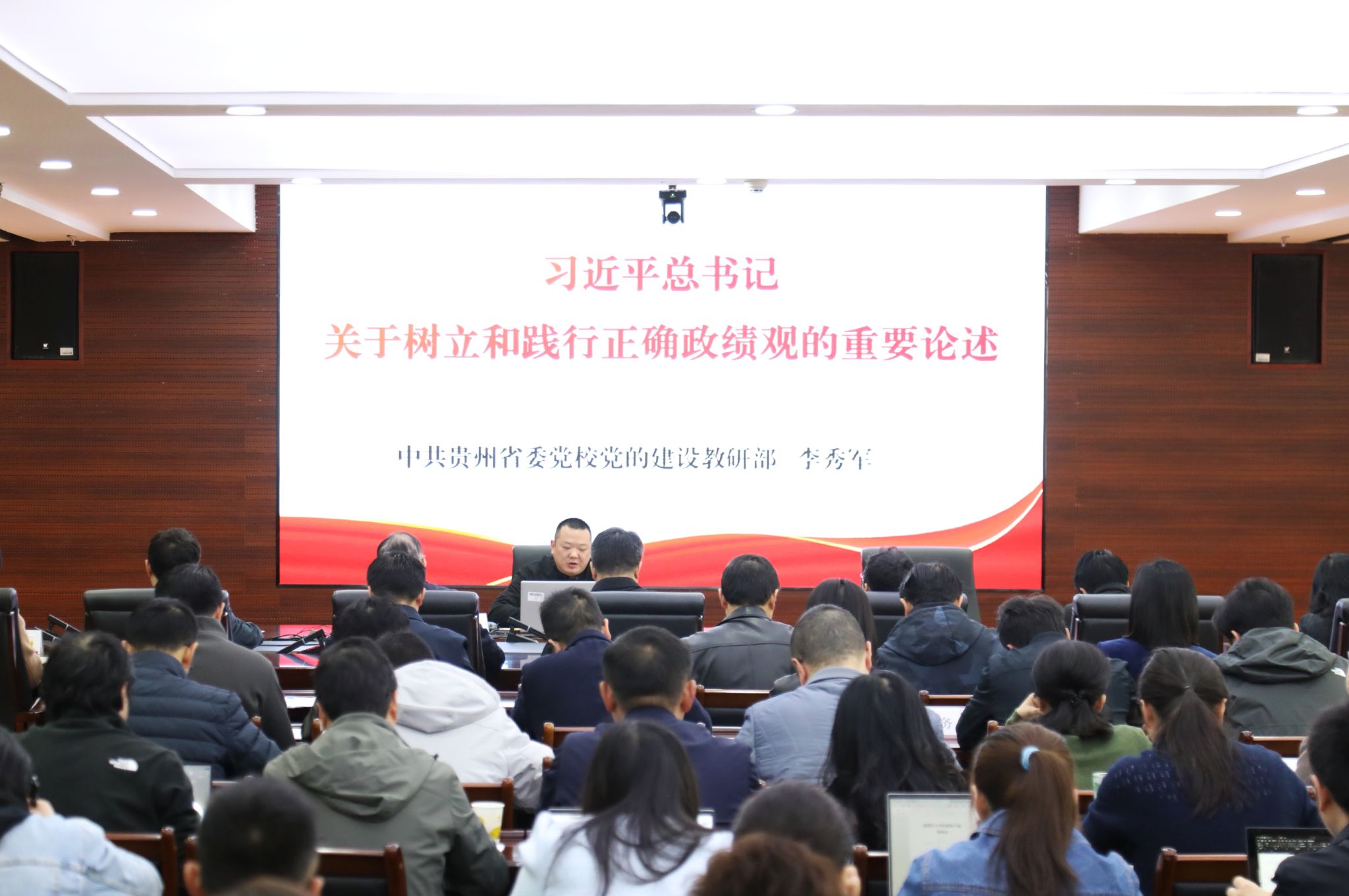 开班式结束后,中共贵州省委党校李秀军教授围绕习近平总书记关于树立和践行正确政绩观的重要论述,从正确政绩观的生成逻辑、丰富内涵、实践要求三个维度作了专题辅导。
