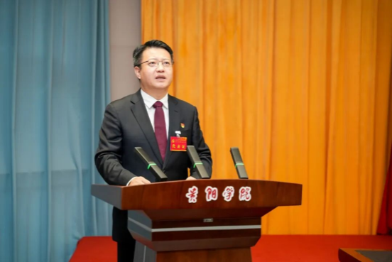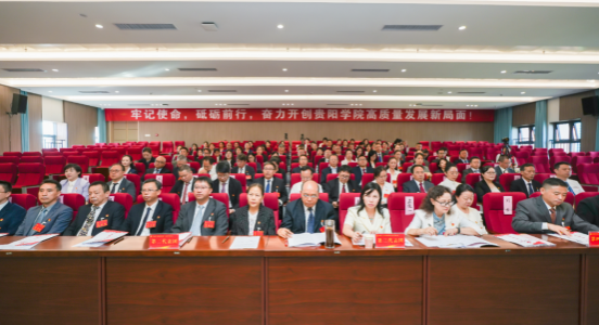 黄营同志代表中国共产党贵阳学院第二届委员会作题为《牢记使命 砥砺前行 奋力开创贵阳学院高质量发展新局面》的工作报告。报告分为四个部分:过去五年工作回顾;过去五年工作的基本经验和存在的主要不足;今后五年的发展思路与工作举措;坚持以高质量党建引领保障学校事业高质量发展。