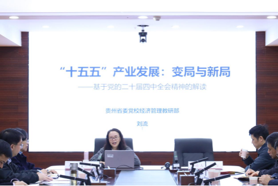 12月4日,贵阳学院特邀省委党校副校长邓献辉教授、经济管理教研部主任刘流教授在九思楼八楼会议室分别作了题为“确保基本实现社会主义现代化取得决定性进展—深入学习领会党的二十届四中全会精神”“‘十五五’产业发展:变局与新局——基于党的二十届四中全会精神解读”专题讲座。讲座由校党委副书记马力主持,全校副处级以上干部参加。