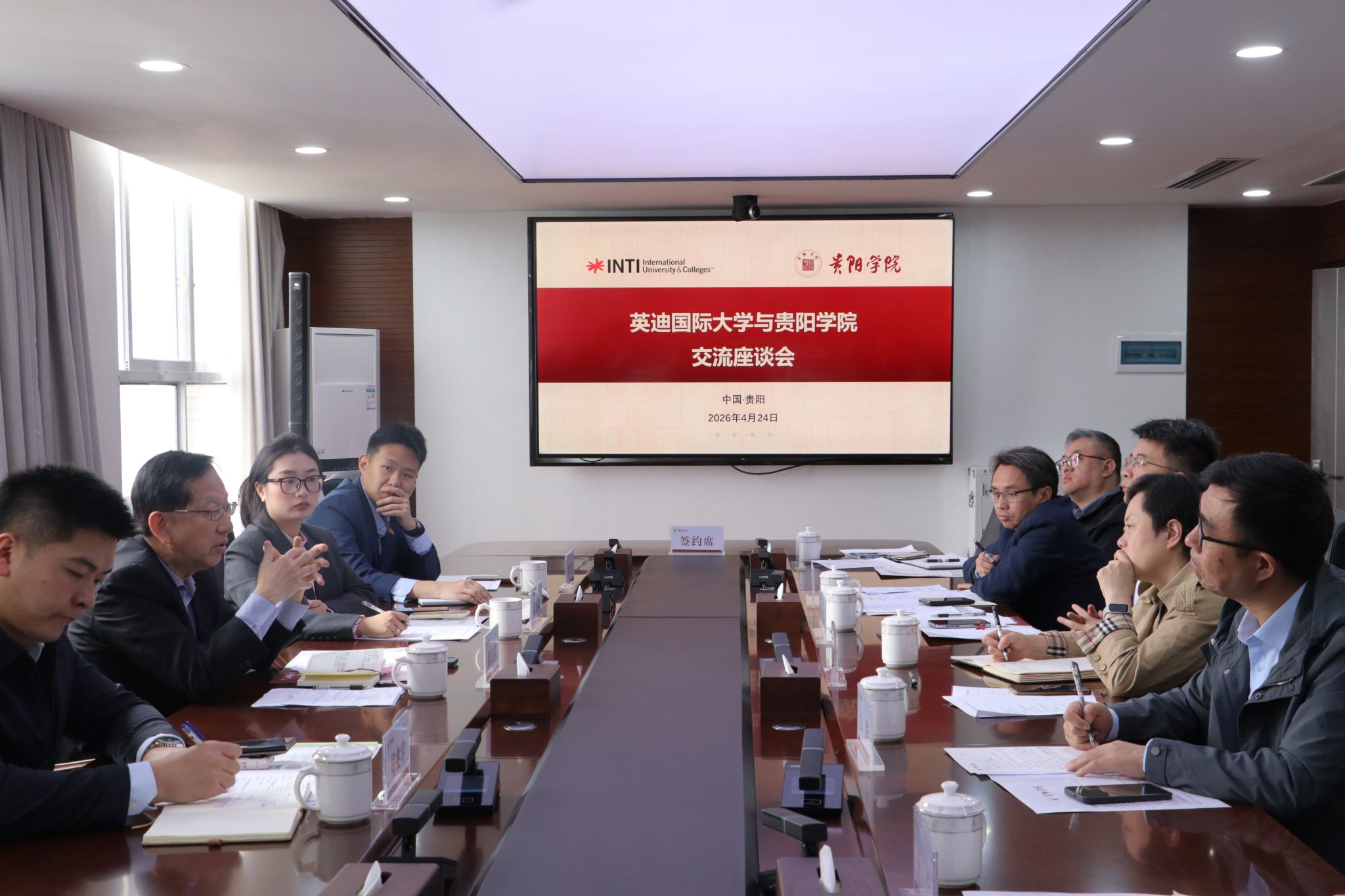 4月24日,马来西亚英迪国际大学董事会主席拿督陈友信一行来访我校,贵州省教育国际交流协会项目官员谌秋吟陪同来访。学校副校长罗红芳出席交流活动,学校相关职能部门、教学院负责人及科研团队教师参加座谈,双方围绕教育教学、科研合作等核心事宜深入沟通,并正式签署谅解备忘录,为两校深化合作奠定坚实基础。