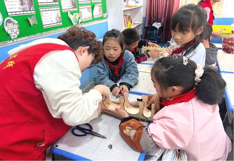 在“桥见贵州”主题课堂上,志愿者通过图文讲解、模型搭建等多种形式,向孩子们生动介绍了贵州世界级桥梁的建设成就,引导他们深入感悟“逢山开路、遇水架桥”的贵州桥梁精神。孩子们亲手拼装桥梁模型,在榫卯结构的拼接过程中理解桥梁的构造原理,沉浸式体验家乡的工程奇迹,从而潜移默化地培养起爱家乡、爱祖国的深厚情怀。从北盘江大桥到坝陵河大桥,志愿者借助鲜活的故事,娓娓道来桥梁建设者的奋斗历程,让孩子们在动手实践中真切理解贵州精神,进一步增强了文化自信与民族自豪感。